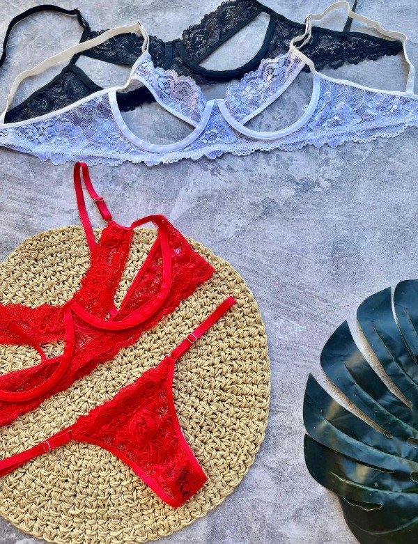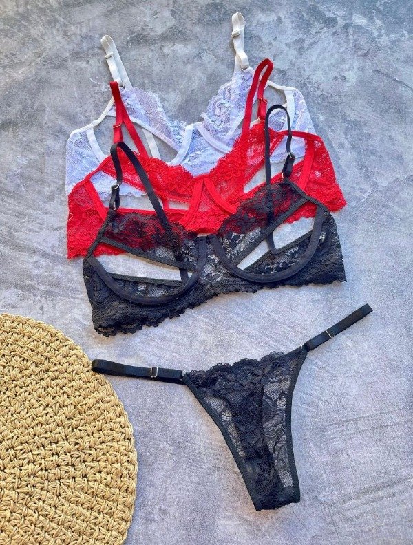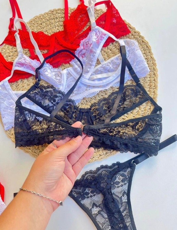 Conjunto erótico de encaje con arco.